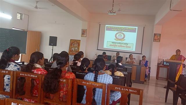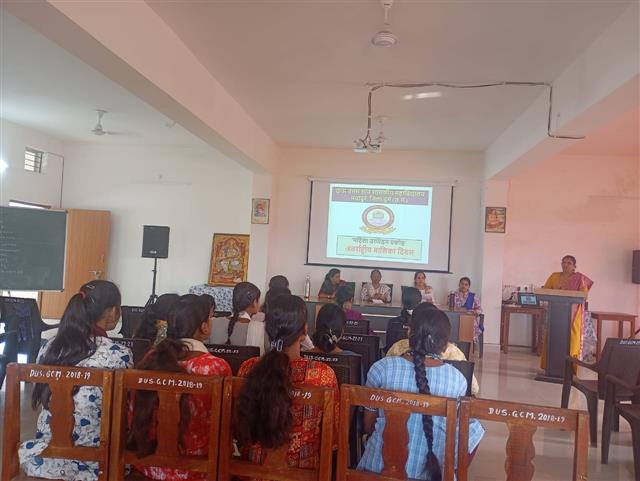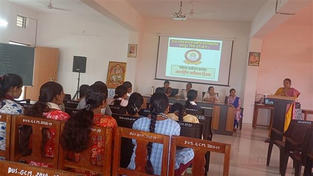 दाऊ उत्तम साव शासकीय महाविद्यालय मचांदुर, जिला दुर्ग में दिनांक 11.10.2025 को 'महिला सुरक्षा जागरूकता योजना' के अन्तर्गत अन्तराष्ट्रीय बालिका दिवस पर कार्यक्रम आयोजित किए गए। महाविद्यालय की प्राचार्य डॉ. संगीता मेहुरिया की अध्यक्षता में आयोजित इस कार्यक्रम में सुश्री जागृति चंद्राकर ने महिला सुरक्षा व उनके अधिकारों से संबंधित कानूनों जैसे घरेलू हिंसा, महिला उत्पीड़न, दहेज प्रथा, बाल विवाह आदि के बारे में छात्राओं को जानकारी प्रदान की। किसी प्रकार की समस्या होने पर विभिन्न निःशुल्क हेल्पलाइन नंबर के बारे में भी बताया। महाविद्यालय की प्राचार्य डॉ. संगीता मैहुरिया ने इस अवसर पर छात्राओं को सुरक्षित रहने व आत्मनिर्भर बनने हेतु प्रोत्साहित किया। कार्यक्रम का संचालन महिला प्रकोष्ठ समन्वयक डॉ. नीलम (प्राध्यापक, रसायन शास्त्र) के द्वारा अन्तर्राष्ट्रीय बालिका दिवस मनाये जाने के उद्देश्य एवं महिला सुरक्षा के लिए शासन द्वारा बनाये गए कानूनों से छात्राओं को अवगत कराया। इस आयोजन में डॉ. कल्याणी के द्वारा छात्राओं को जागरूक होने के विविध पहलुओं को बताते हुए आभार प्रकट किया गया। इस कार्यक्रम में प्राध्यापक डॉ रामेश्वरी दास सहित बड़ी संख्या में छात्राएँ उपस्थित रहीं।